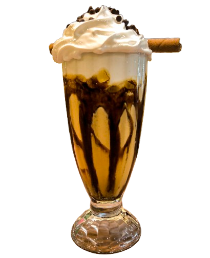 A decadent, creamy treat mixed with chocolate, ice, and whipped cream on top- your ultimate sweet getaway in a cup.